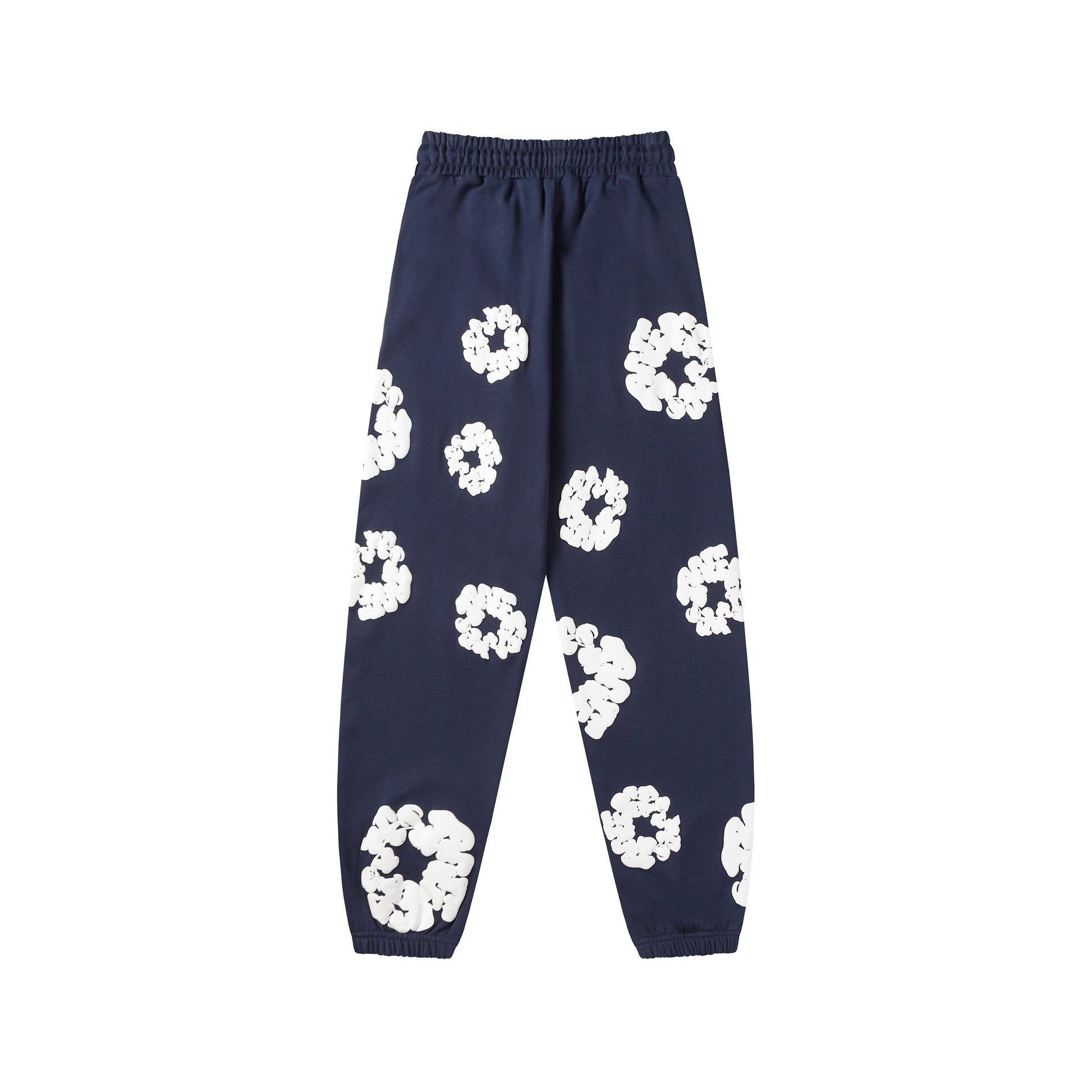 - The Denim Tears The Cotton Wreath Navy Sweatpants are perfect for those looking to enhance their casual style with a piece that combines functionality and aesthetic appeal.