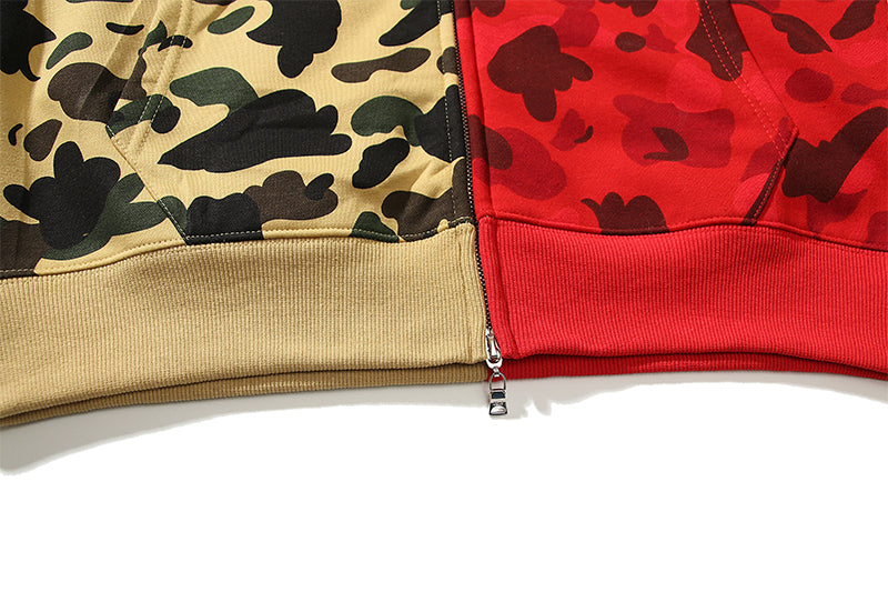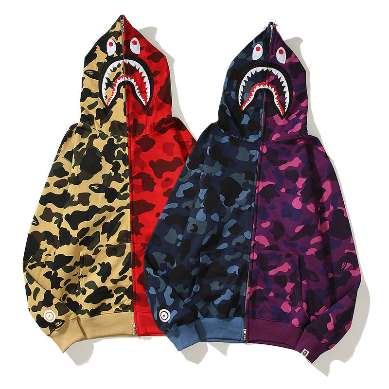 Split Color Designer Shark Full Zip Up Unisex Hoodie Y2K Style Streetwear - High-Quality Material - Menswear, Sweaters