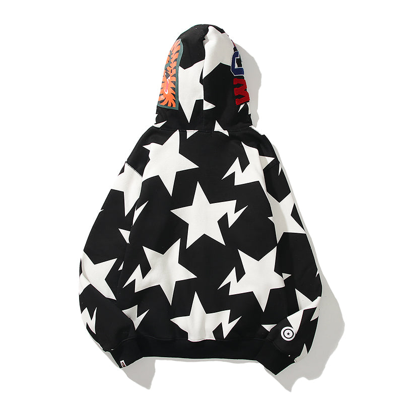 Star Print Designer Shark Full Zip Up Unisex Hoodie Style Streetwear Made with High-Quality Material